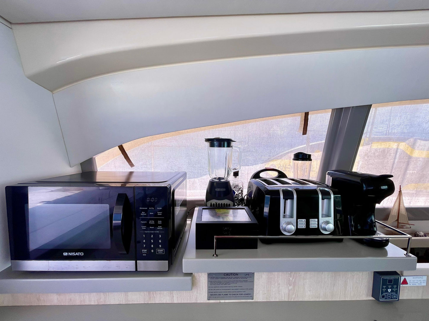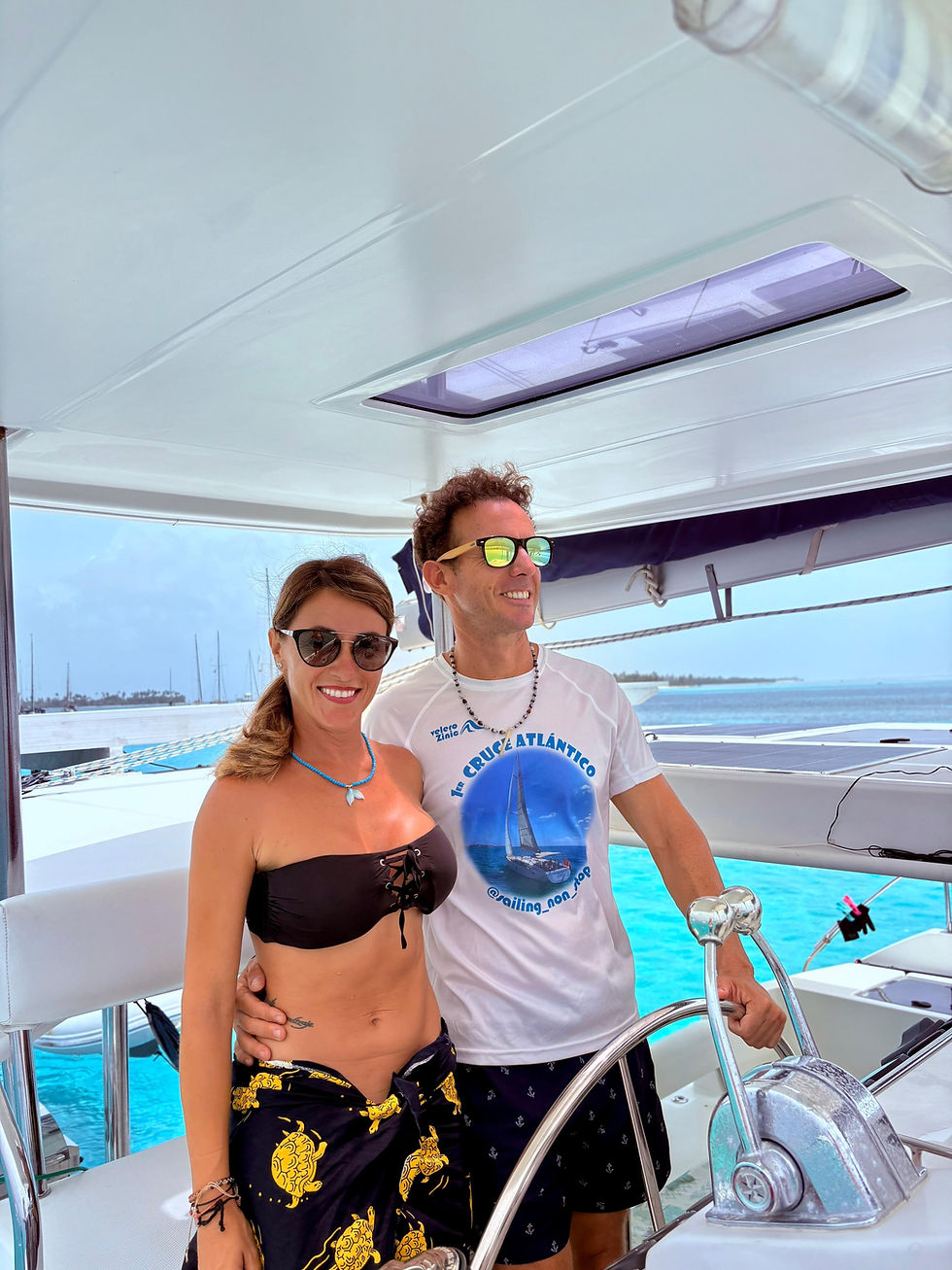La peculiaridad de estos catamaranes Leopard es a parte de la puerta de entrada y ventanales , otra puerta que conecta el salon con la proa, para un flujo constante de aire y ventilación, no necesitamos el aire acondicionado debido a esto y todas las ventanas y escotillas que tiene .